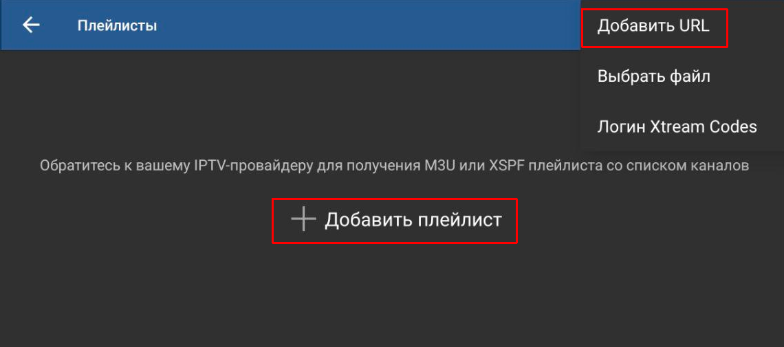 4. В окне «Плейлисты» нажимаем кнопку «+ Добавить плейлист» и «Добавить URL»