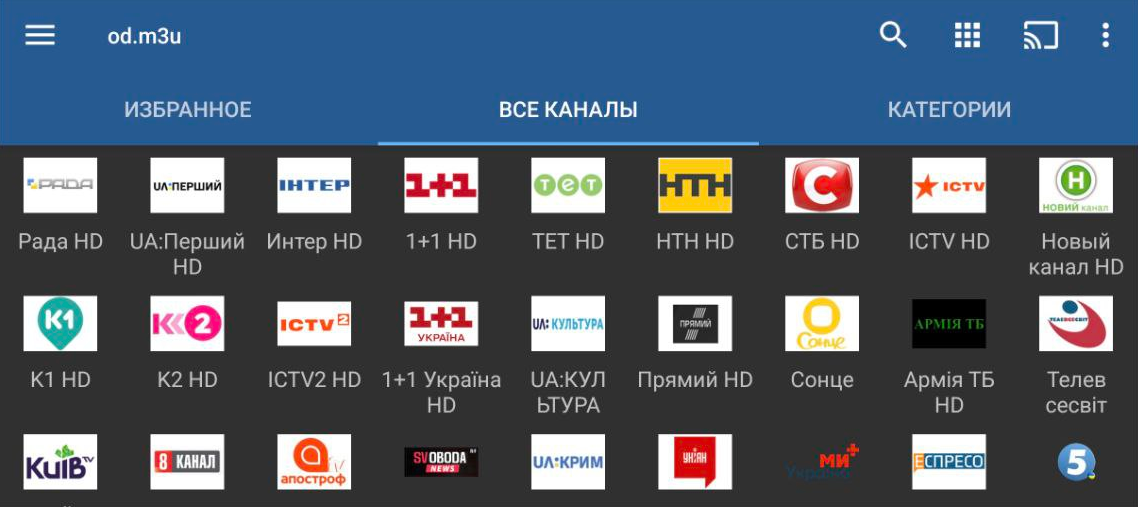 6. После этого Вы увидите список каналов